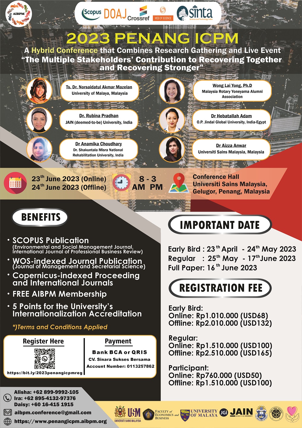 Co-Hosts and Participants are very welcome to join and support this conference. This conference gives you the opportunity to present your research paper as well as building network, both national and internationally. The committees invite you to participate and recommend this event with your friends or colleagues.